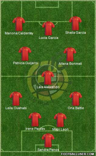 No overt change in the shape when compared to the Finland fixture as far as the bookie can tell. Two personnel change and a few positional shifts to cover. Patricia Guijarro moved up to let Laia Aleixandri =(replacing Irene Guerrero) work as the primary midfield string-puller. Lucia Garcia also scooted over to the false-nine spot to take over for the ineffective Esther Gonzalez. Caldentey took Gonzalez's spot.